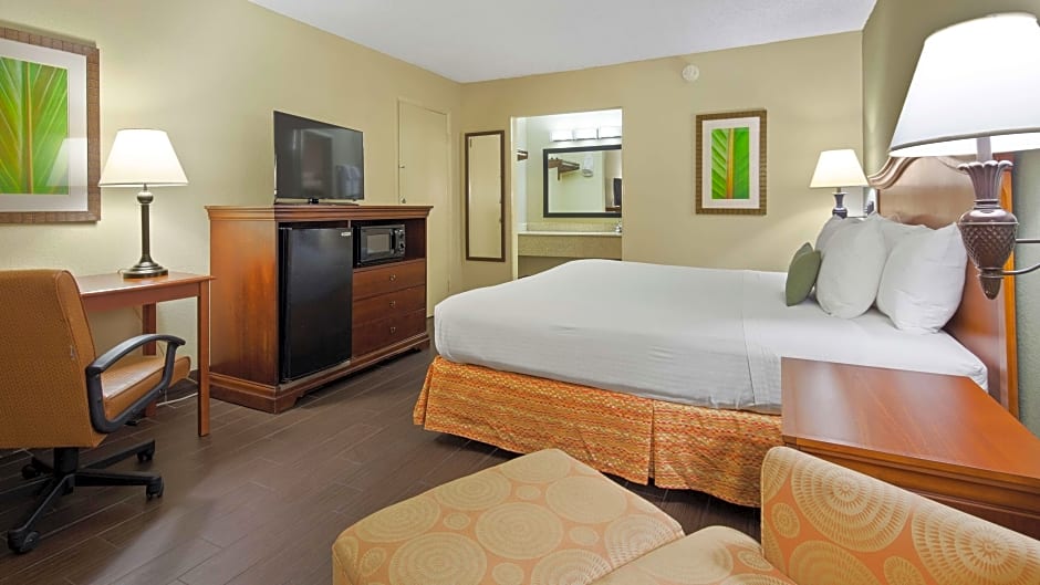 This nonsmoking guestroom includes a microwave, small refrigerator, and coffee-making facilities. A cable TV is also provided.